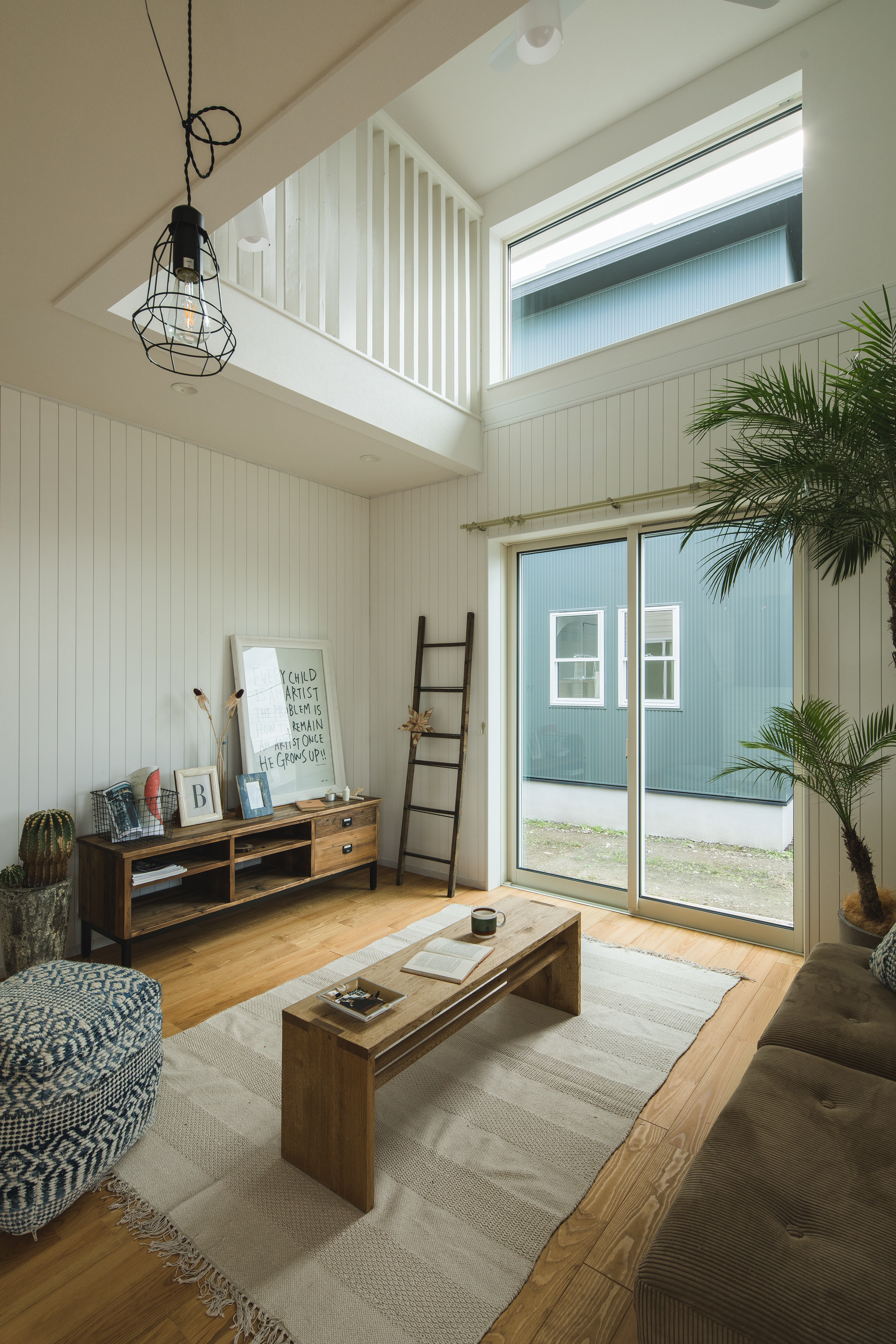 吹抜けのあるカバードポーチのある家