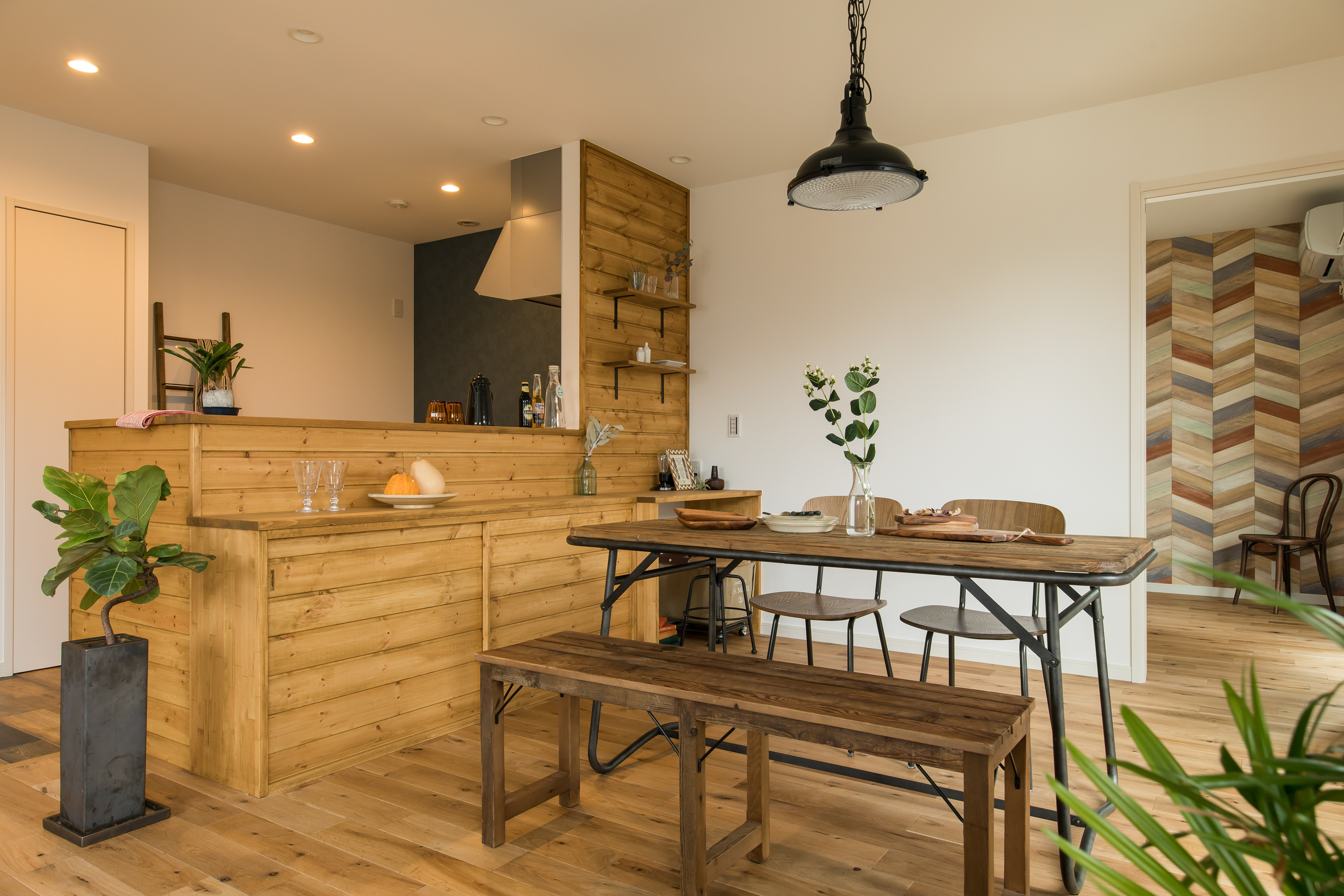 ヘリンボーン×ガラスウォール×カリフォルニアスタイル